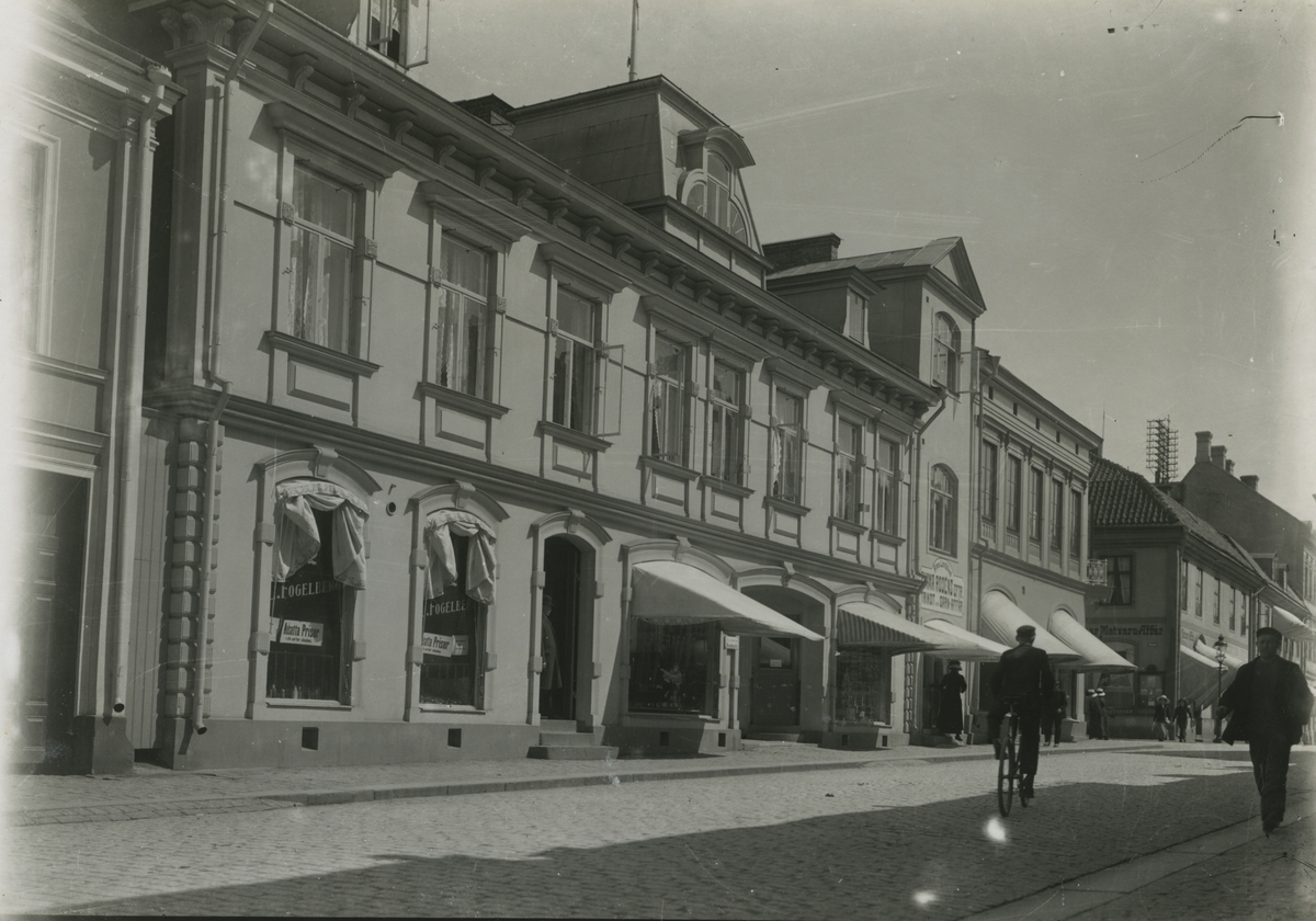 I hörnet av Kaggensgatan och Storgatan, kv. Apotekaren 1, är numera AB Svenska Handelsbankens hus beläget.