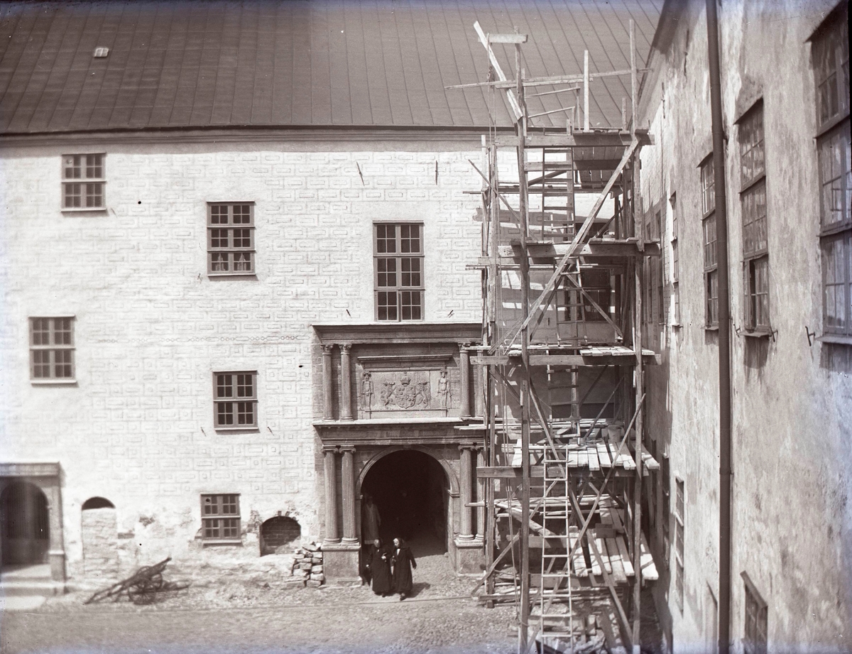 Inre borgen med byggnadsställning på Kalmar slott.