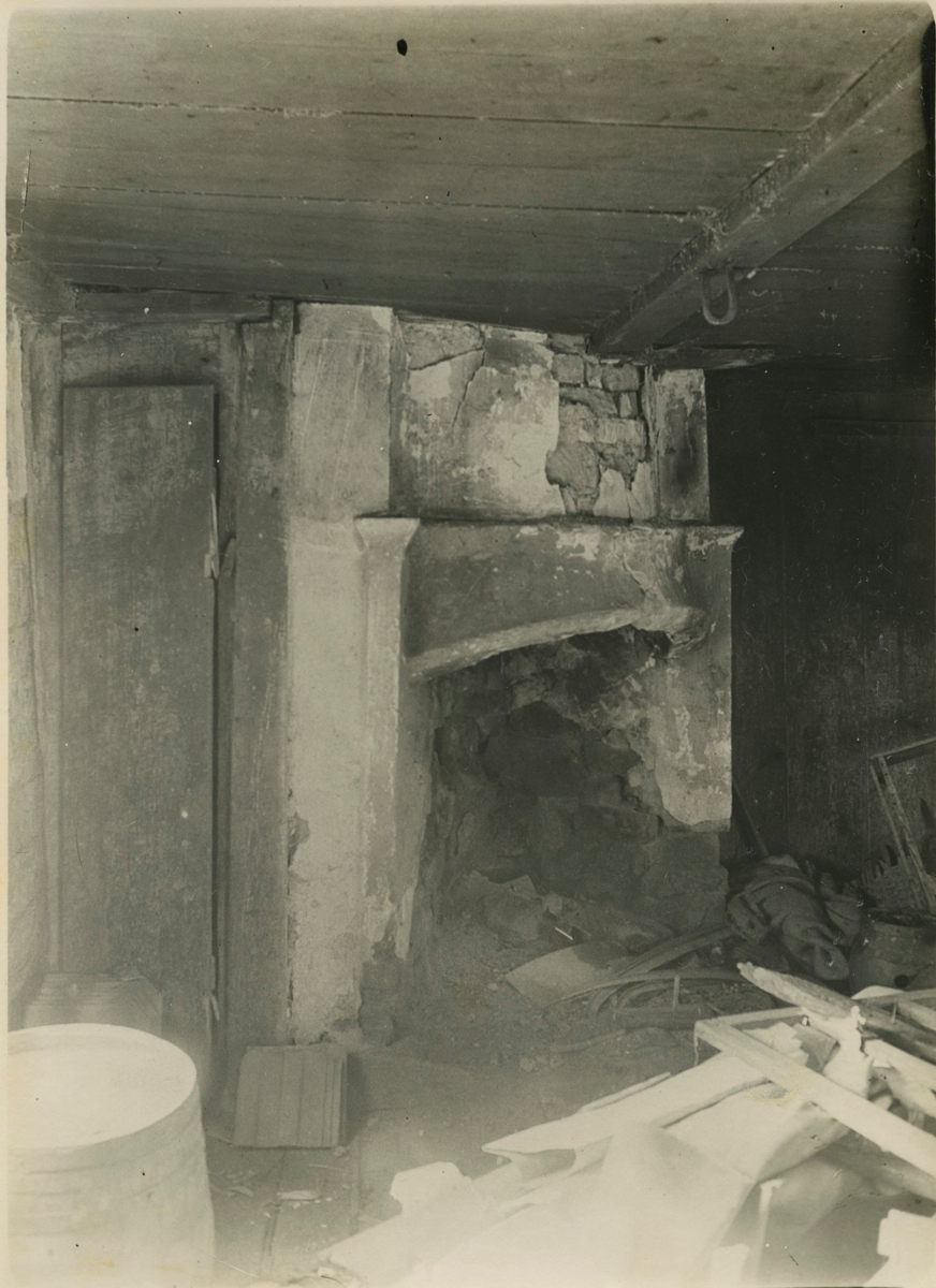 Boningshus vid gatan till ladugården. Spis med uppsvängd kåpa.