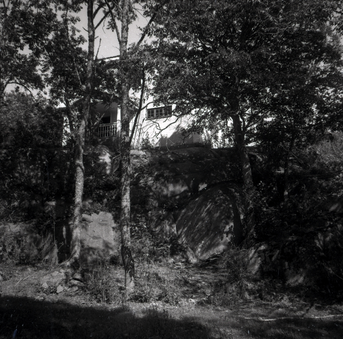 Helgerum, gamlegården byggd 1919-1920 sedd genom skogen.