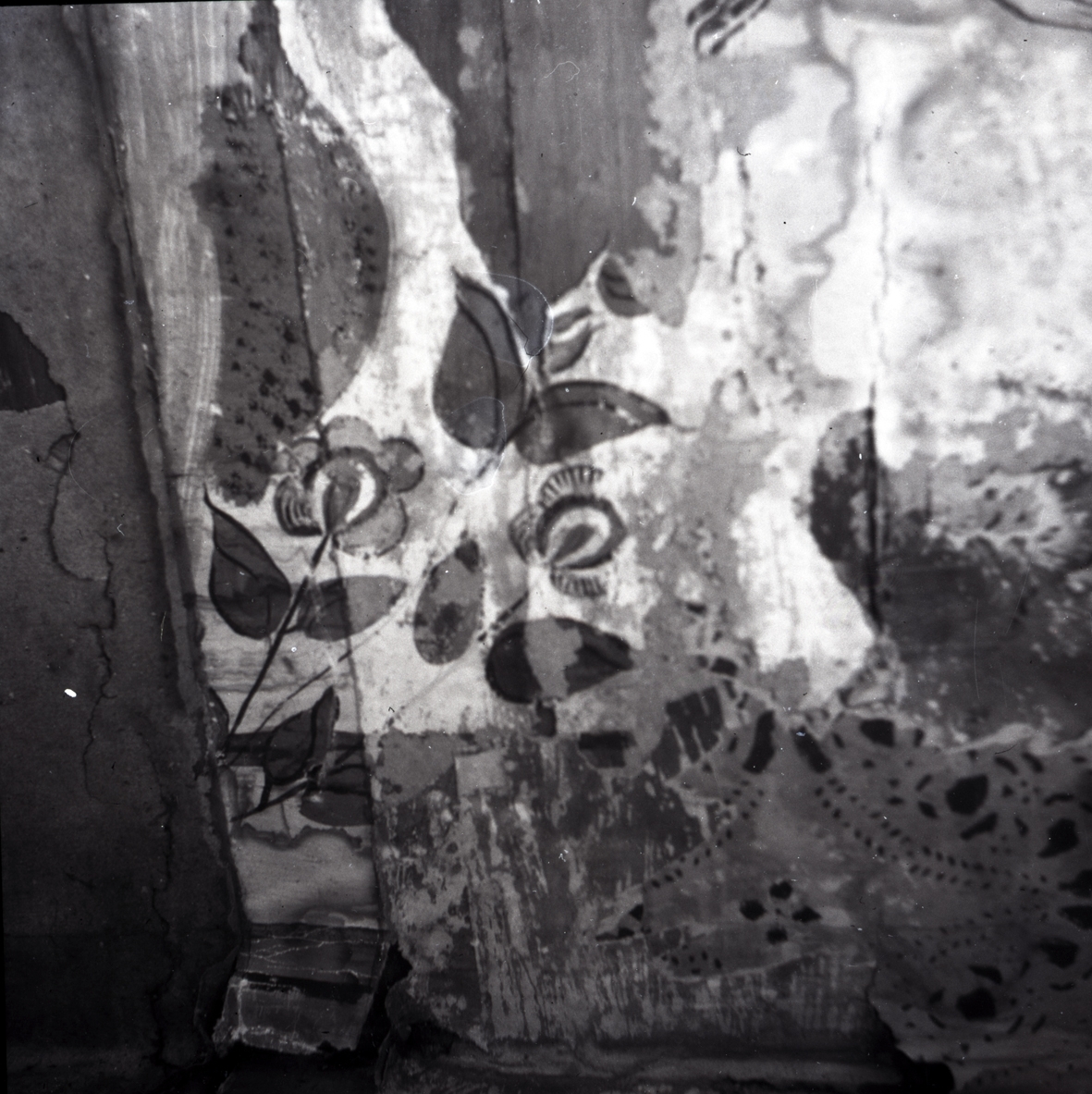 Väggmålning i hus i Runtorp, Väggmålning på papper klistrat på timret.