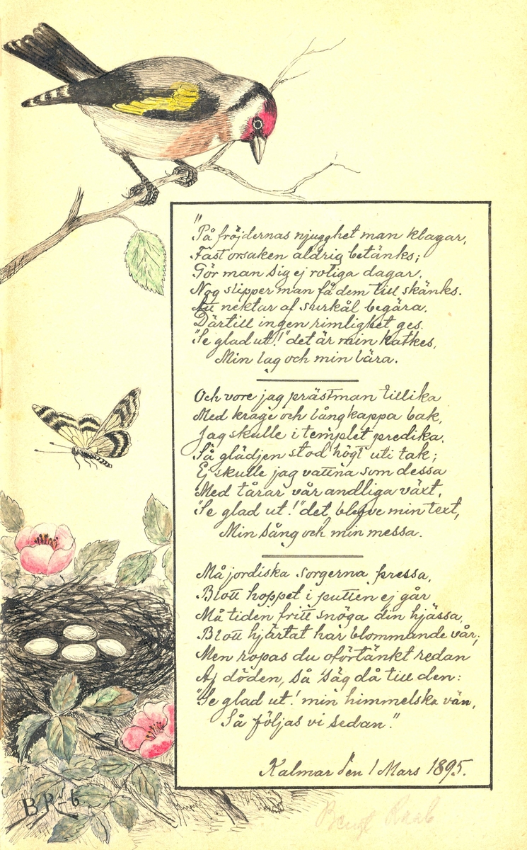 Illustrerad dikt ur Lilly Sahlbergs minnesalbum.