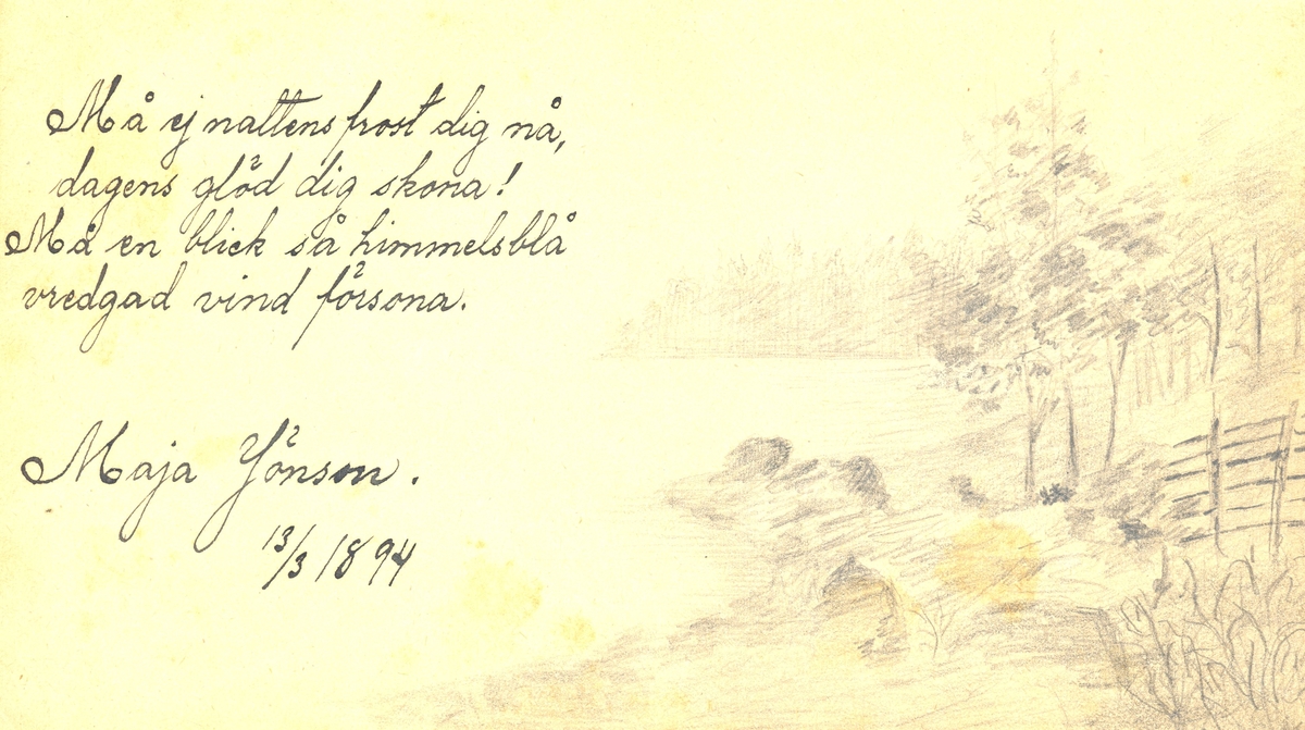 Illustrerad dikt ur Lilli Sahlbergs minnesalbum.