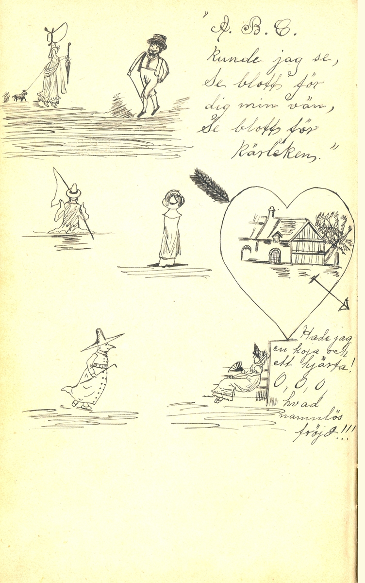 Illustrerad poesi ur Lilli Sahlbergs minnesalbum.