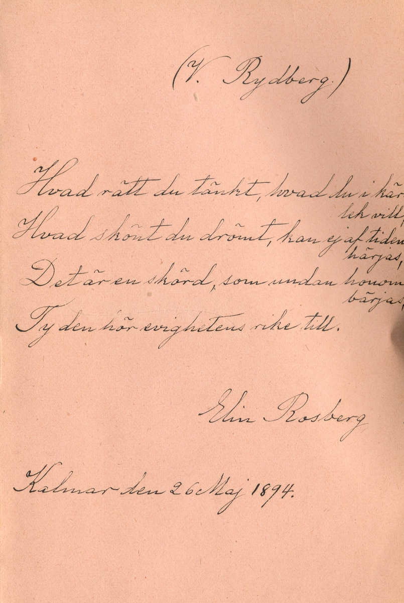 Sida med poesi ur Lilli Sahlbergs minnesalbum.