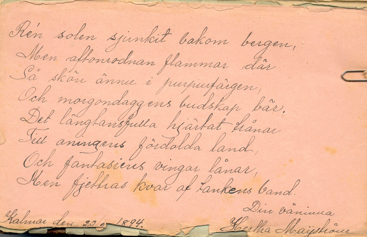 Sida med poesi ur Lilli Sahlbergs minnesalbum.