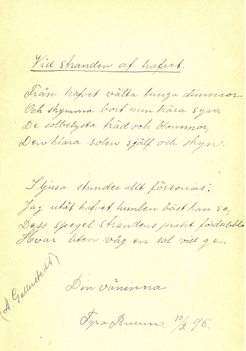 Titel: Sida med poesi ur Lilli Sahlbergs minnesalbum.