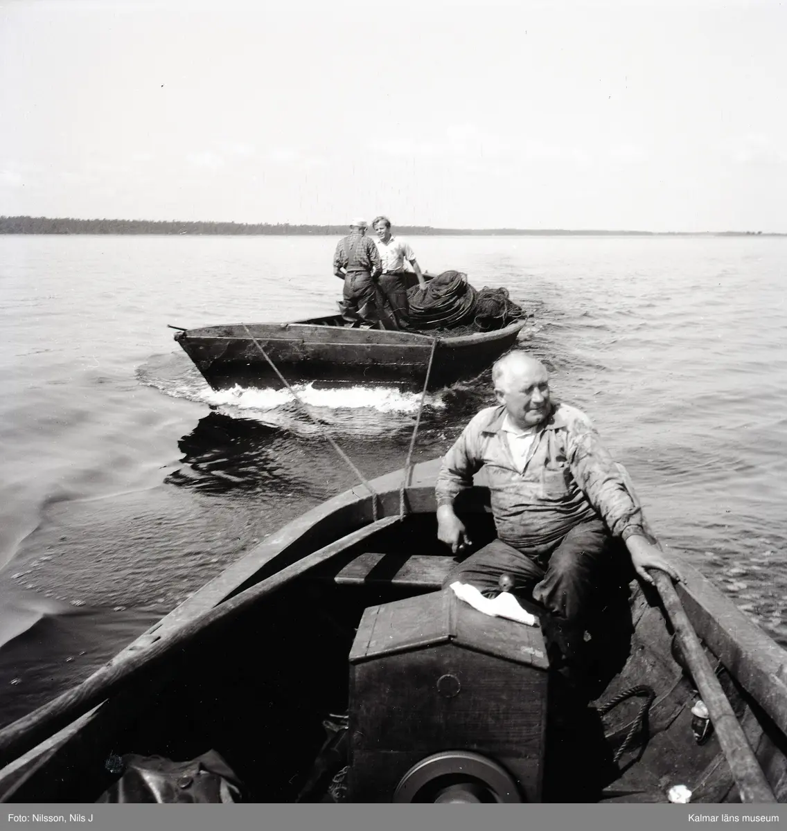 Ålbottengarn sättas ut. "Vållökungen" Georg Engström, i bakgrunden sonsonen Lars.