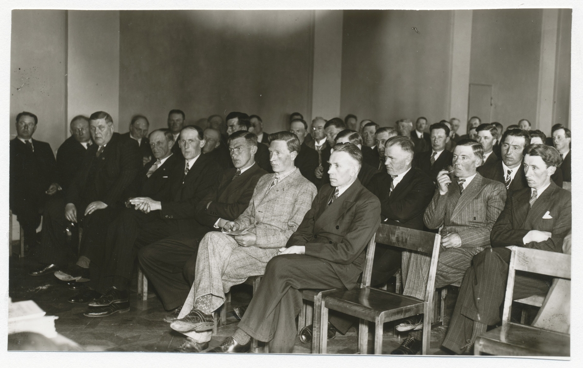 Första raden från höger, nummer sex lantbrukare Sven "Stor-Sven" Svensson, Tingby, Smedby, nummer sju Oscar Tornegård, Gräsgård.