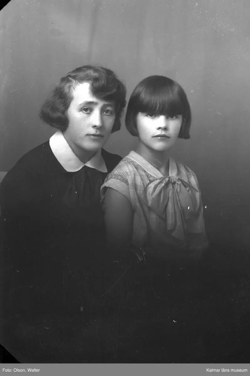 Ateljébild på en kvinna och en flicka med en rosett. Enligt Walter Olsons journal är bilden beställd av fru Chreisti.
