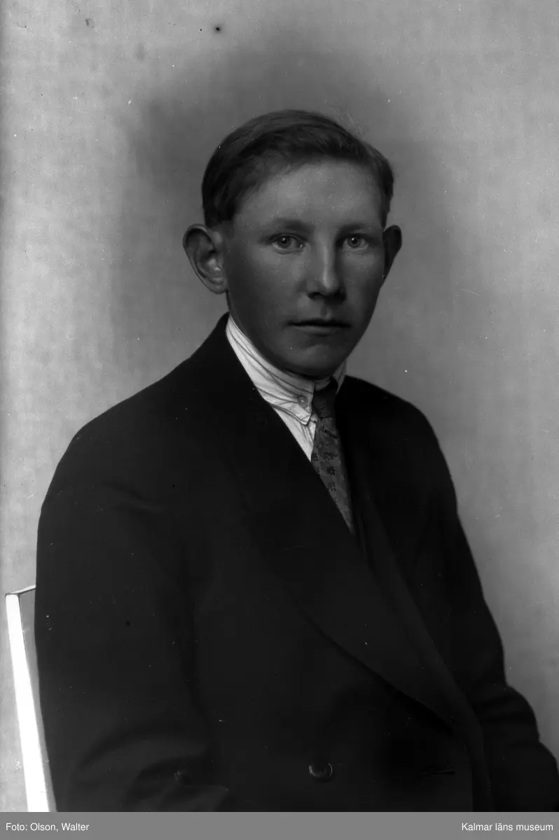 Ateljébild på en man. Enligt Walter Olsons journal är bilden beställd av Ebba Larsson.