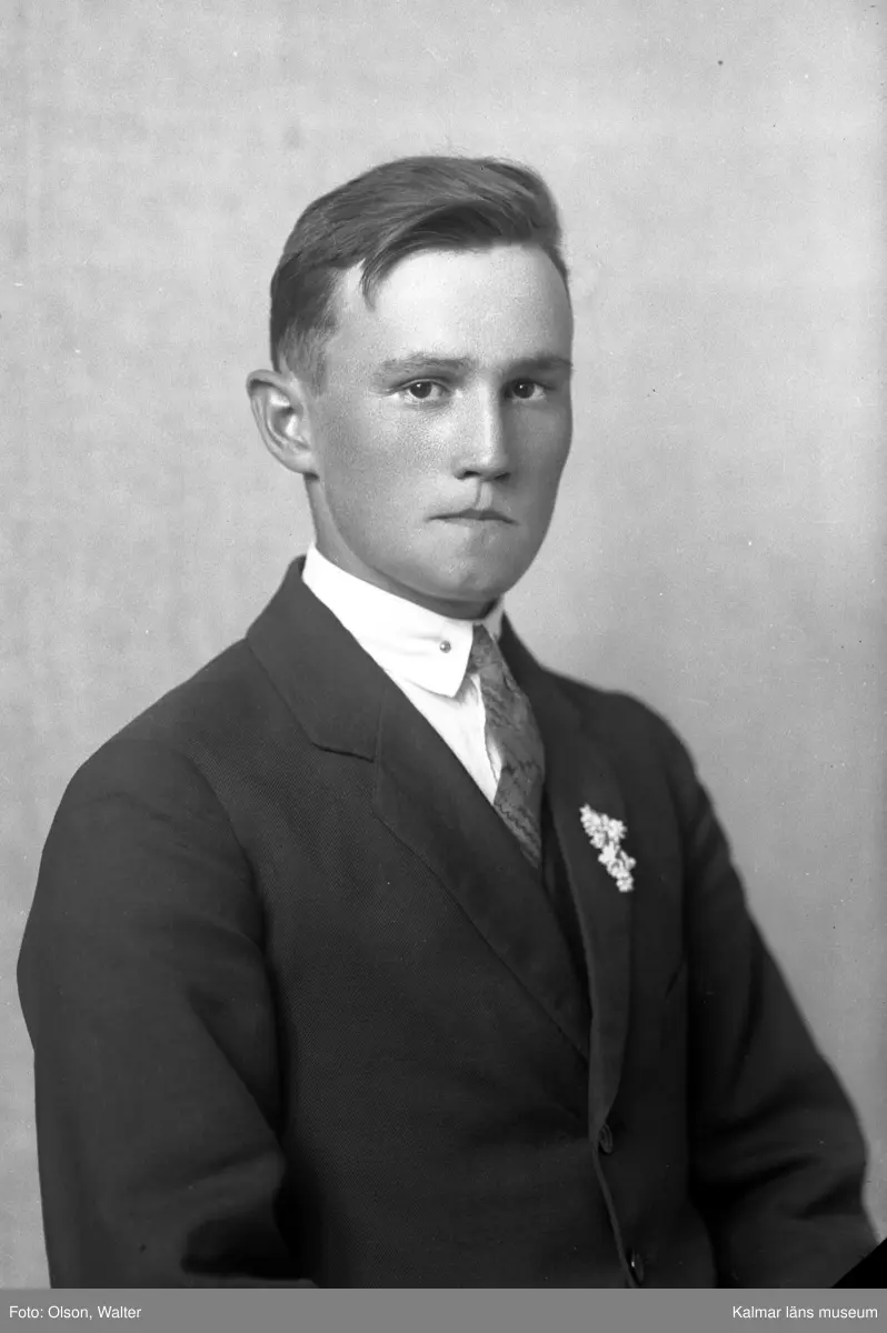 Ateljébild på en man. Enligt Walter Olsons journal är bilden beställd av Henry Hedin.