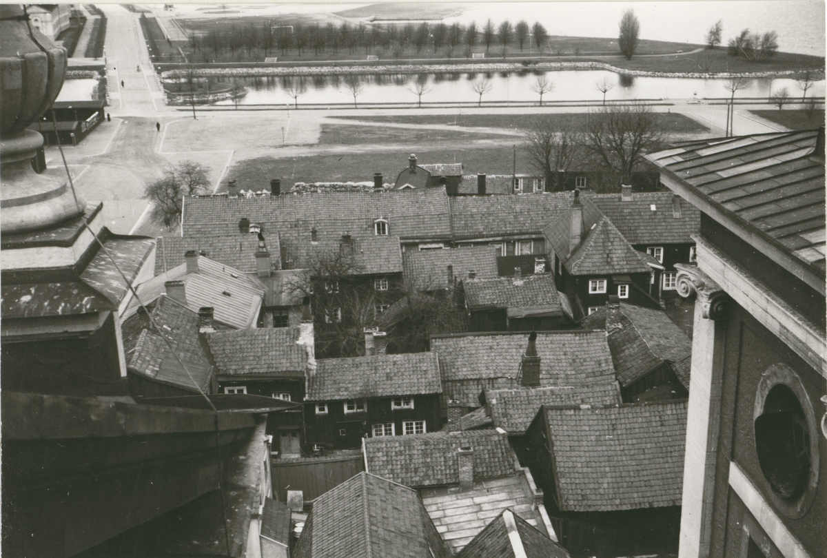 Parti av norra Kvarnholmen, Käringlåret och Rävspelet, från Kalmar domkyrka.