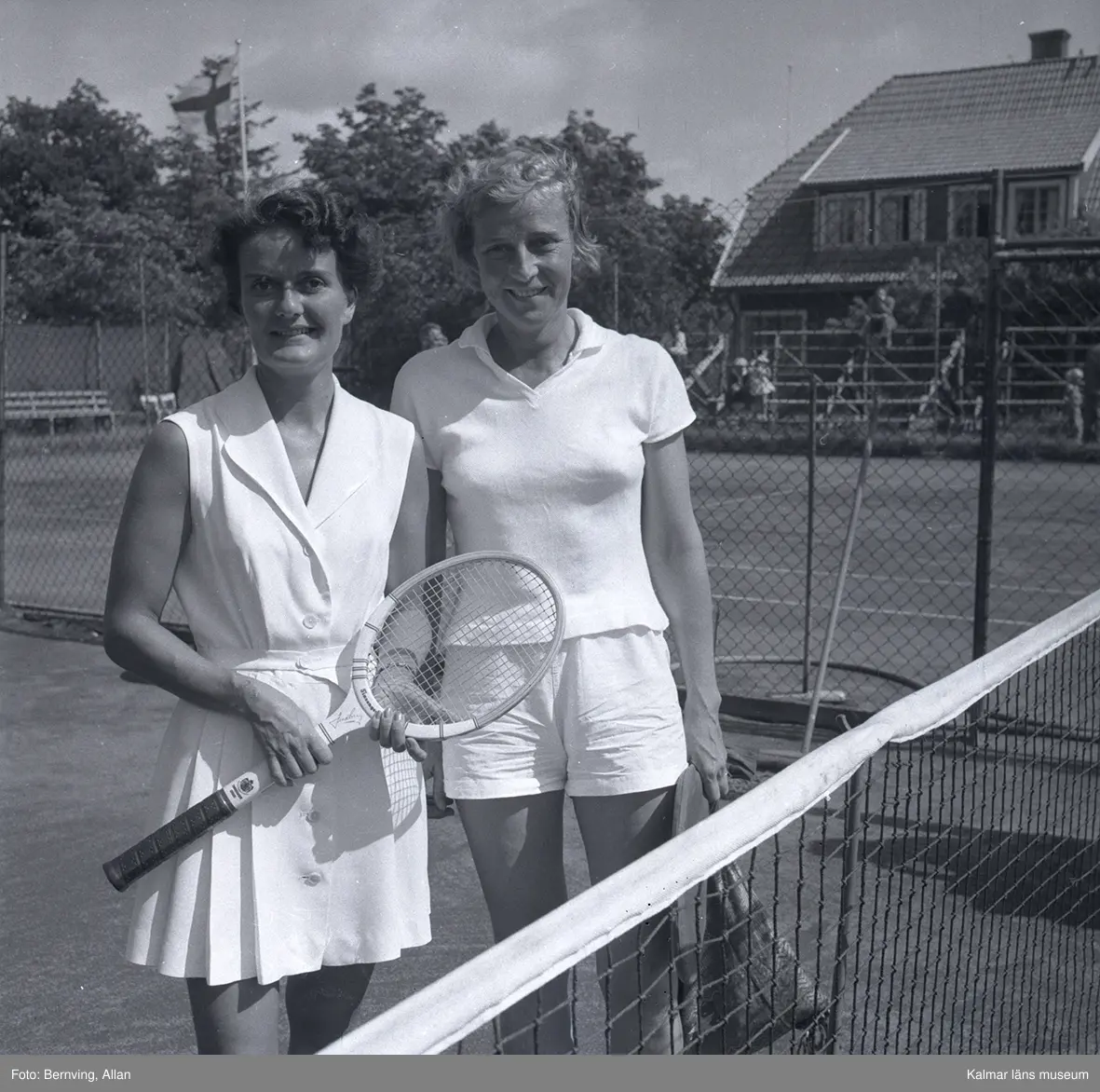 Tennisfinaler och prisutdelning en måndag. Två tennisspelare. Namn medföljande bild: Mjörne.