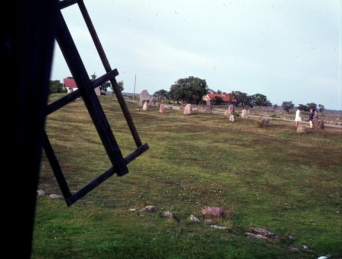 Vy från skeppssättningen i Ytterby. I förgrunden syns en vinge till en väderkvarn.