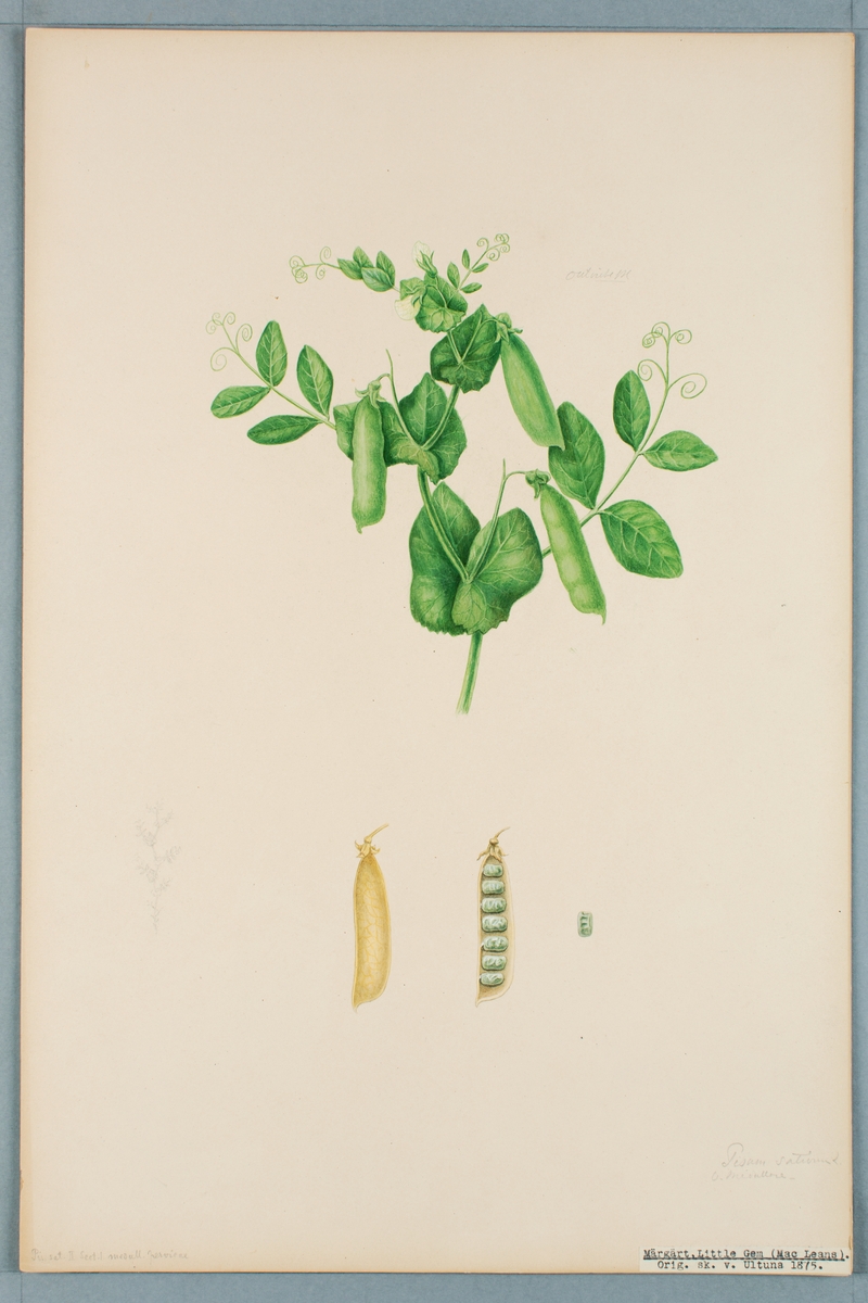 Sveriges kulturväxter. Illustration utförd av Henriette Sjöberg. Märgärt, Little Gem/Mac Leans. Odlad Ultuna 1875. Inv. nr. C101 : 437.