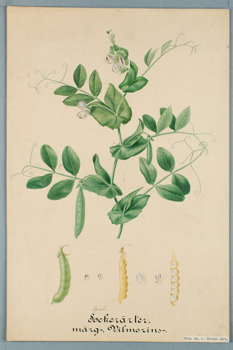 Sveriges kulturväxter. Illustration utförd av Henriette Sjöberg. Sockerärt/Märgärt, Vilmorin´s. Odlad Ultuna 1871. Inv. nr. C101 : 440.