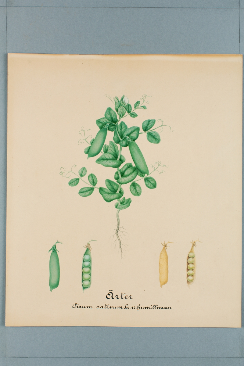Sveriges kulturväxter. Illustration utförd av Henriette Sjöberg. Ärter. Odlingsplats och datering saknas.