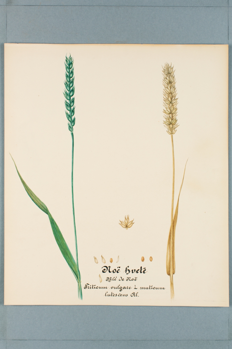 Sveriges kulturväxter. Illustration utförd av Henriette Sjöberg. Vete, Blé de Noë ou Blé bleu. Odlingsplats och datering saknas.