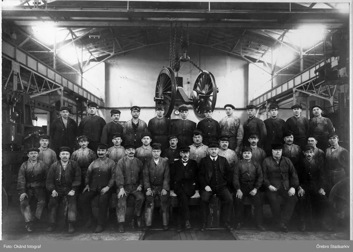 Arbetare med basar i Centrala verkstädernas hjulverkstad, 1910-tal