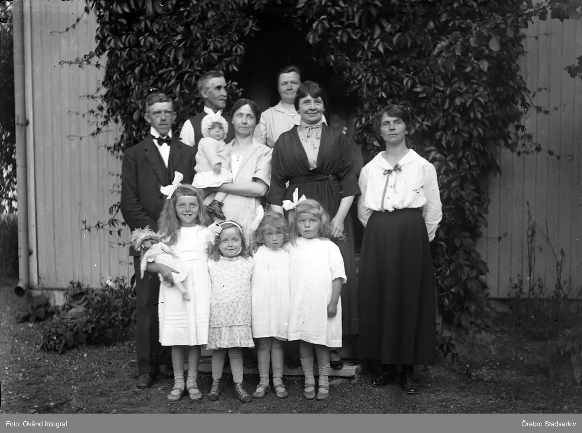 Familj vid hus, 1920-tal