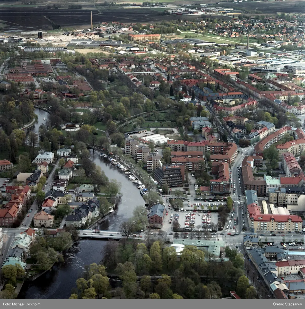 Flygfoto över Örebro mot öster, 1995