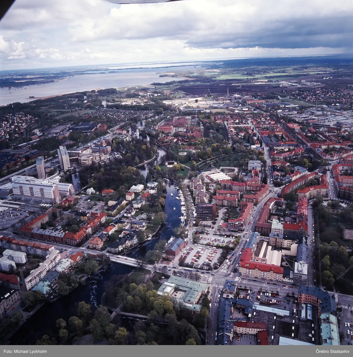 Flygfoto över Örebro mot öster, 1995