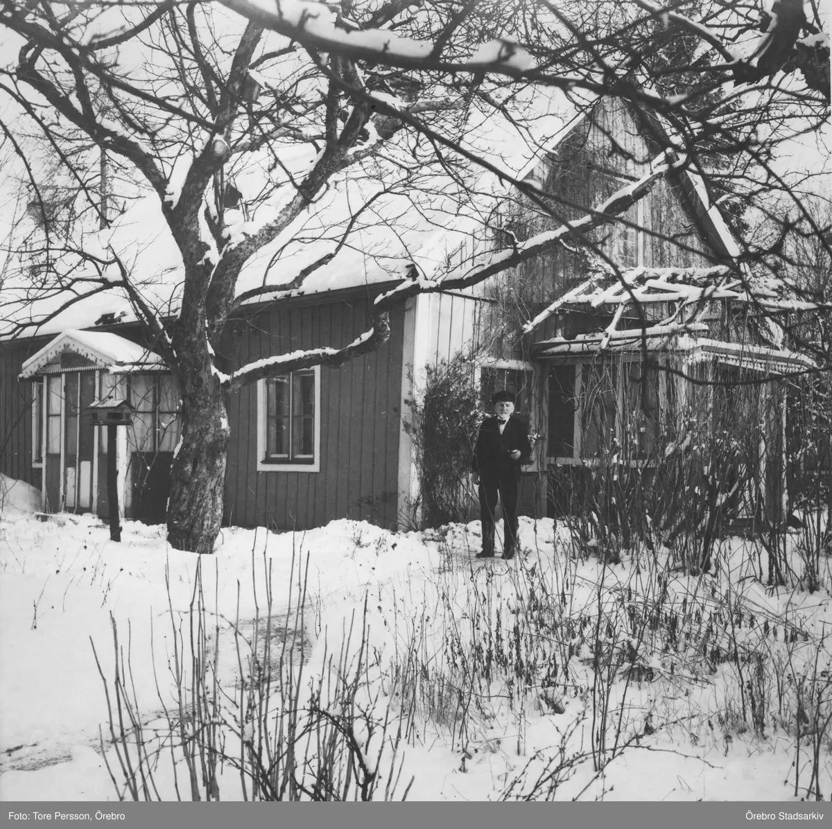 Man framför sitt hus på venavägen 4,6, 1956