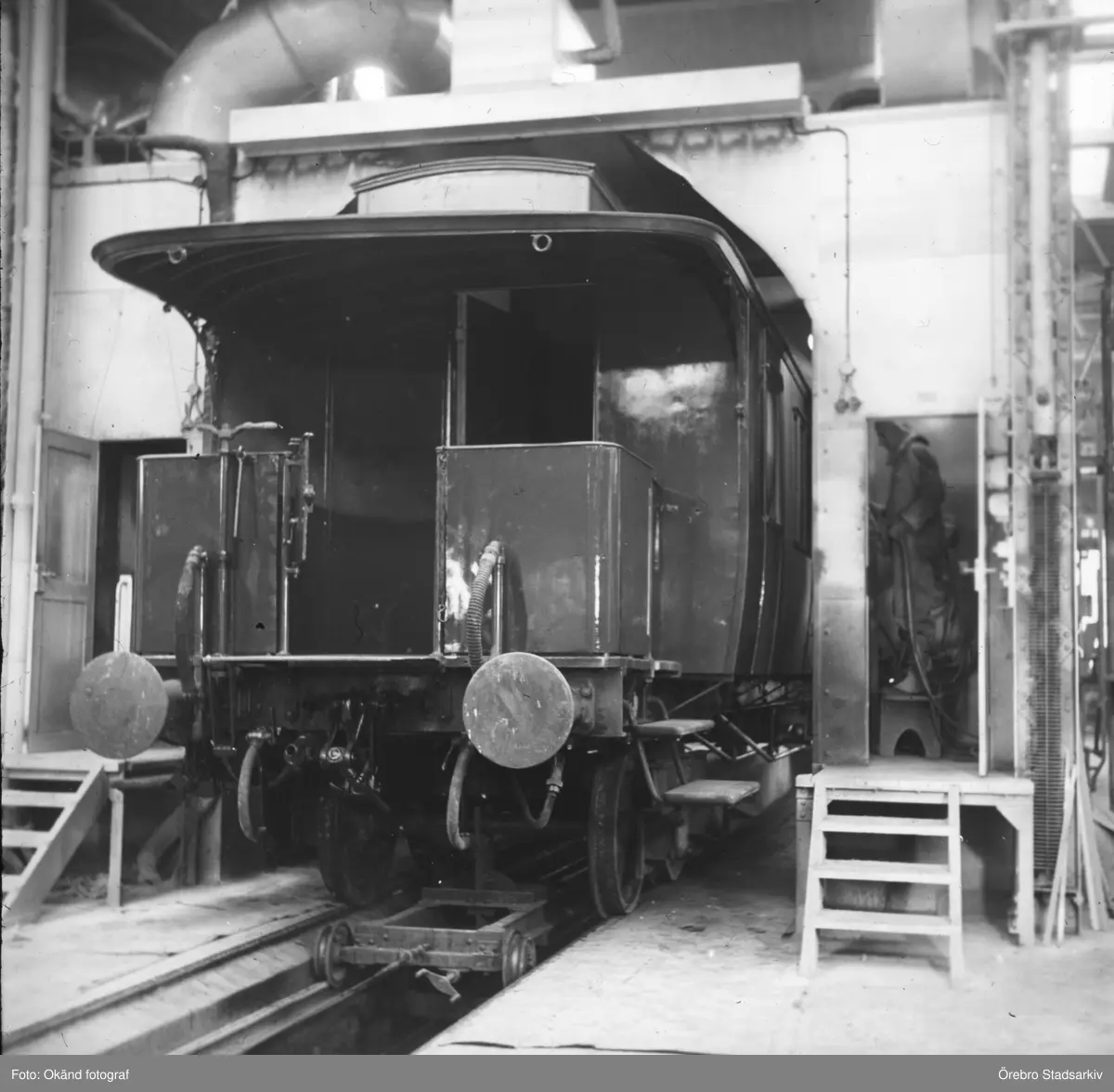 Målningsarbete på järnvägsvagn i vagnverkstaden, 1902-1909