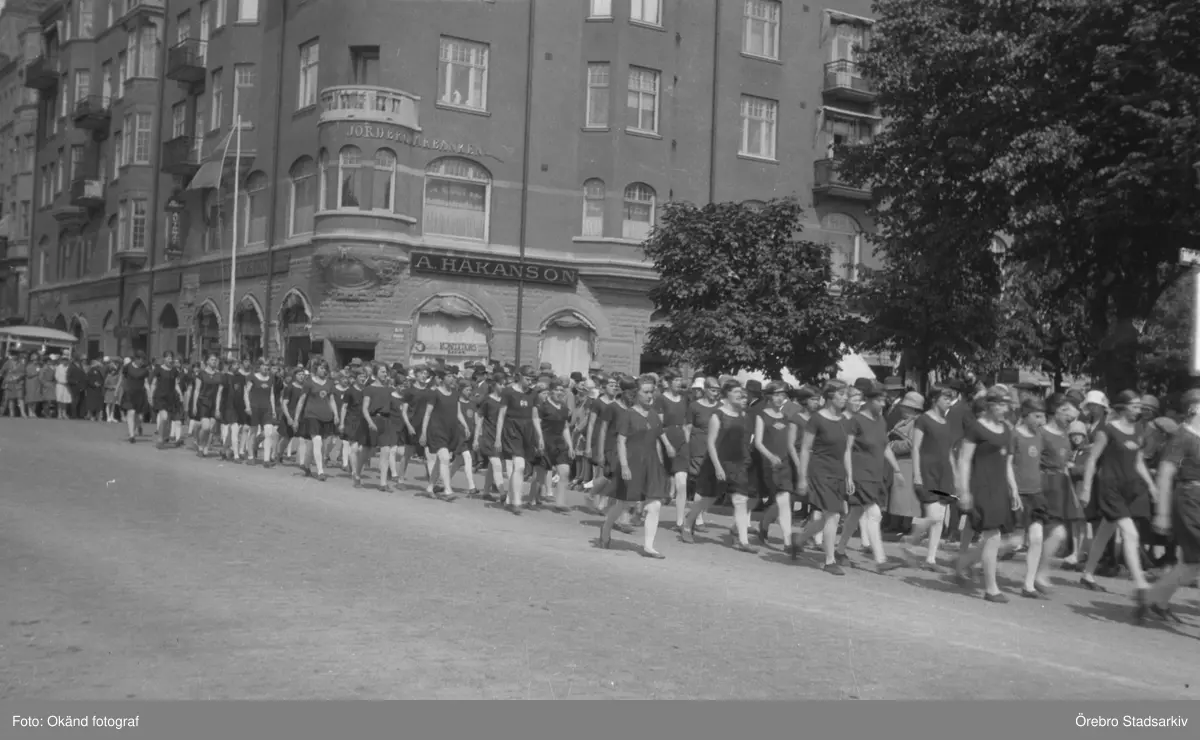 Damer i Första maj-tåg på Storgatan, 1940-tal