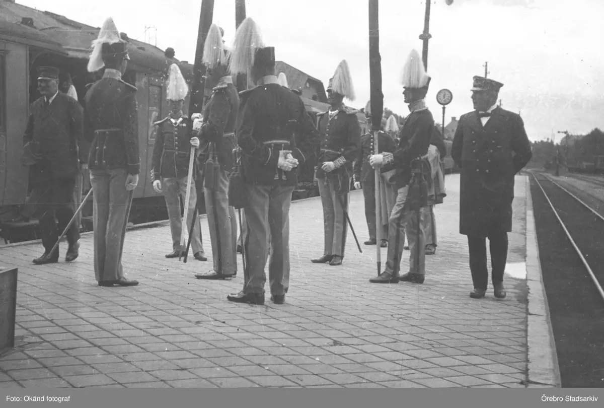 Högvakt från I3 inväntar Kung Gustaf V på Centralstationen, 1940-tal