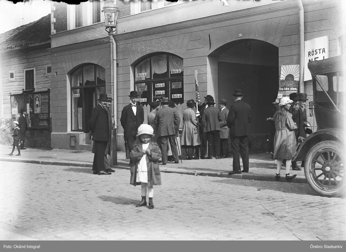 För och emot rusdrycksförbud utanför Templarcafé på Klostergatan 20, 1922