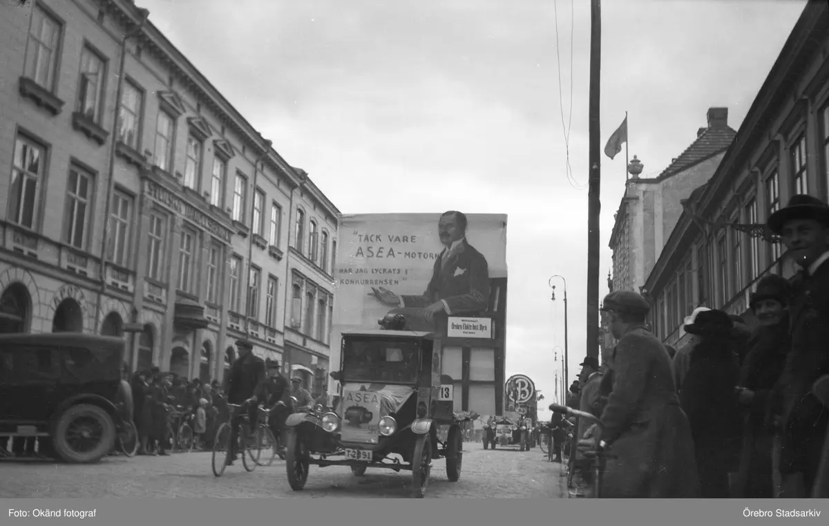 Första vagnen i örebroutställningens parad på Drottninggatan, 1928