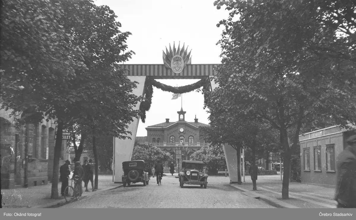 Smyckat på Järnvägsgatan inför Kung Gustaf V:s besök, 1940-tal