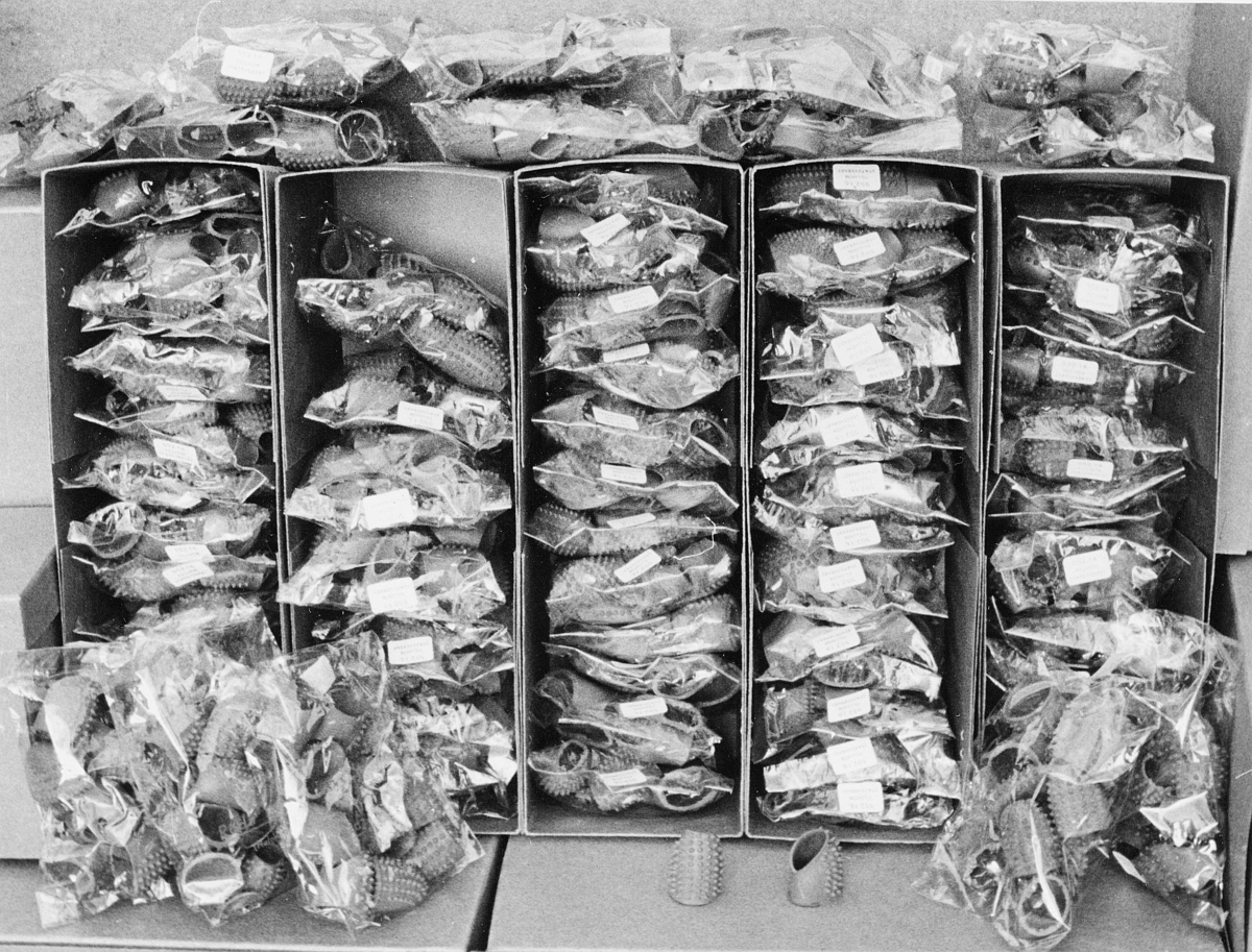 Sedelräknare av gummi, i Central-förrådet, Ulvsunda. Huvudparten av