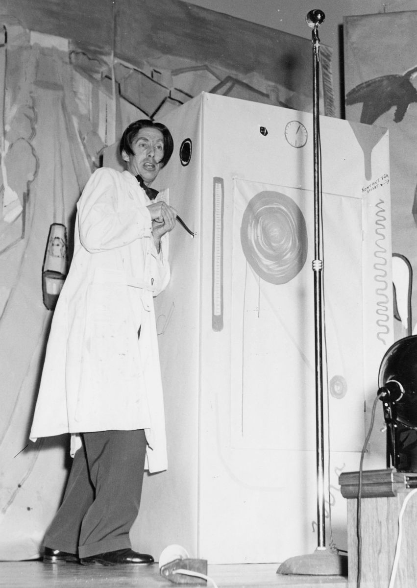 Folke Strandner demonstrerar sin fantastiska tvättmaskin.