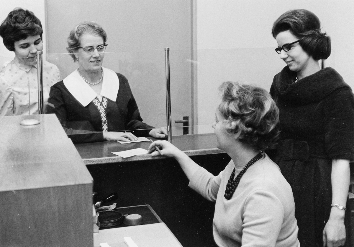 Utbildning av "Reservkassörer", i en kassaexpedition på postskolan.