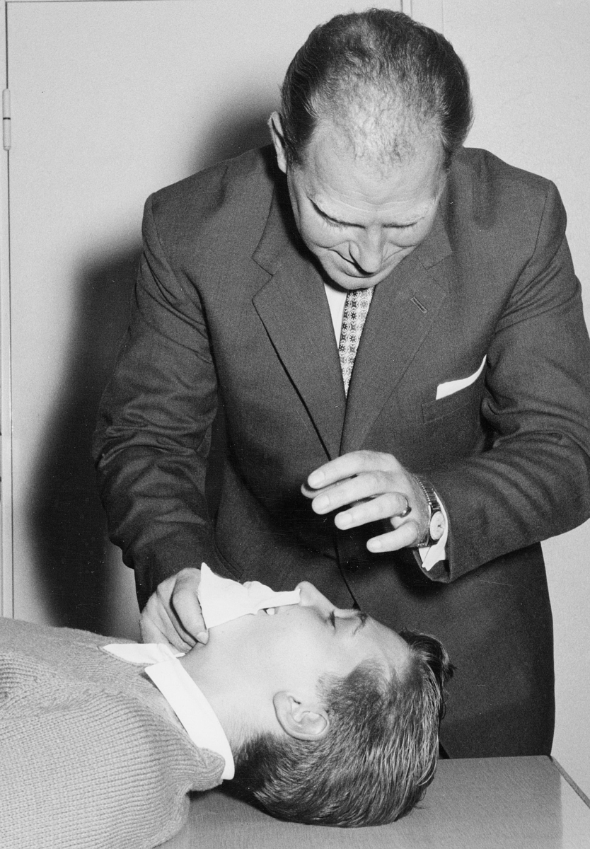Förste postiljon Ture Antonsson demonstrerade mun-mot-mun-metoden.