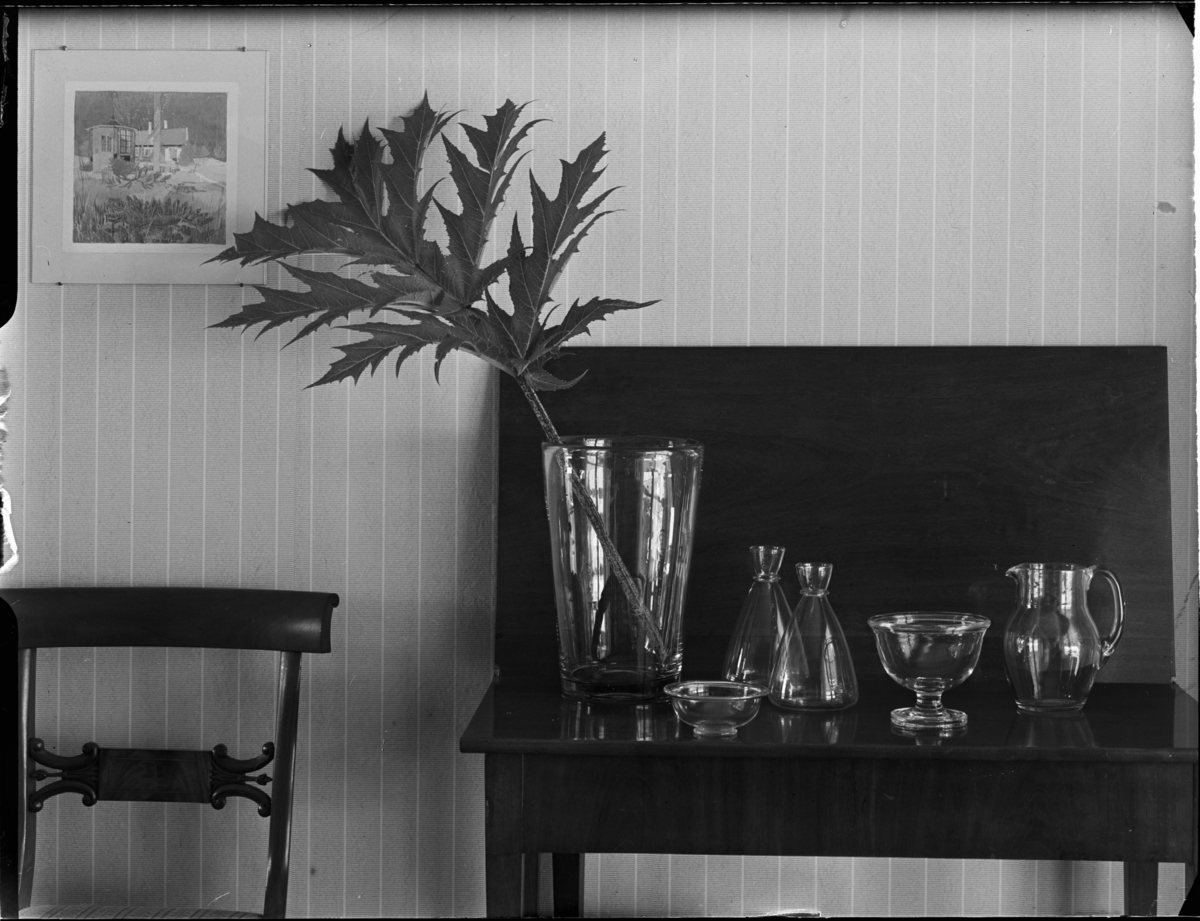 Titel: GLAS, MÄSSING, STENGODS, TENN MED BLAD OCH BLOMMOR, FRÄSVÄT, KLIPPARS