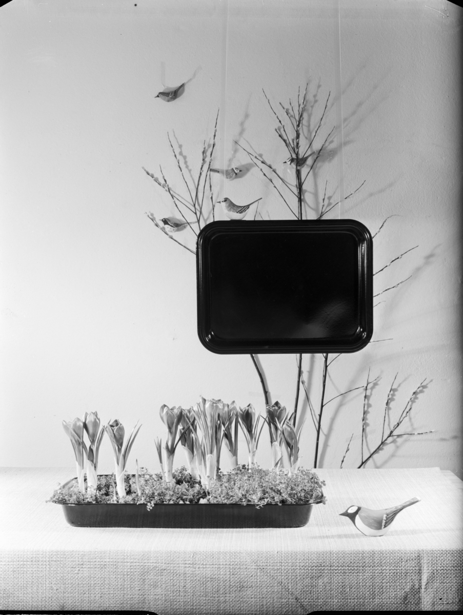 OMSLAGSBILD PÅSKNR., BLOMMOR FÅGLAR KVIST BRICKA