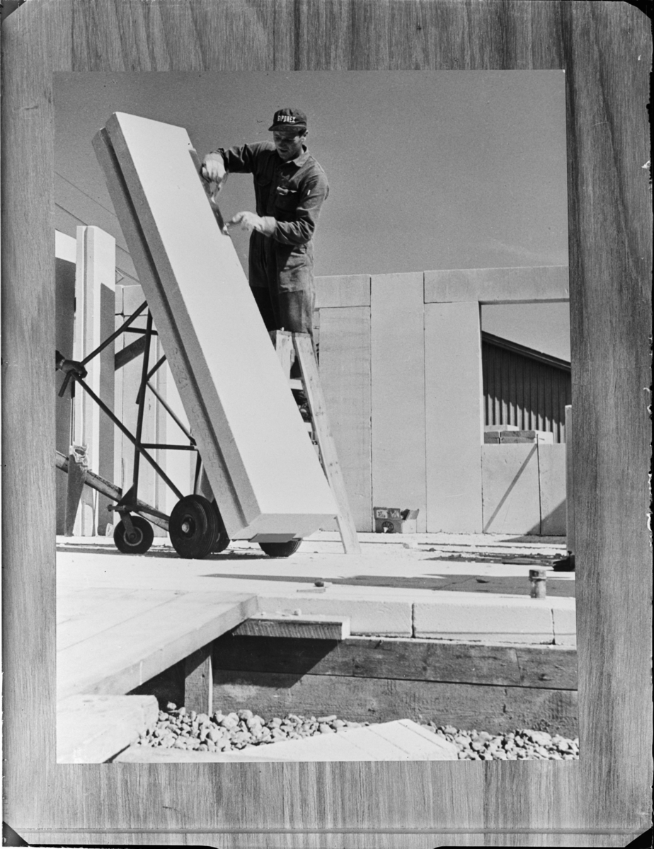 EXPERIMENTHUS I ÄLVSJÖ, SIPROREXHUSET MONTERING AV SIPROREXBJÄLKAR (VÄGGELEMENT) SPEKULATIVT