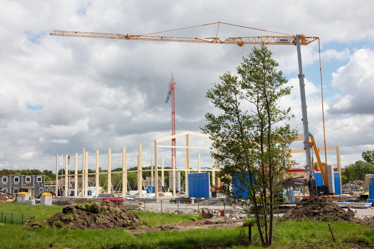 Vänersborg. Vy över byggnation på Holmängen
