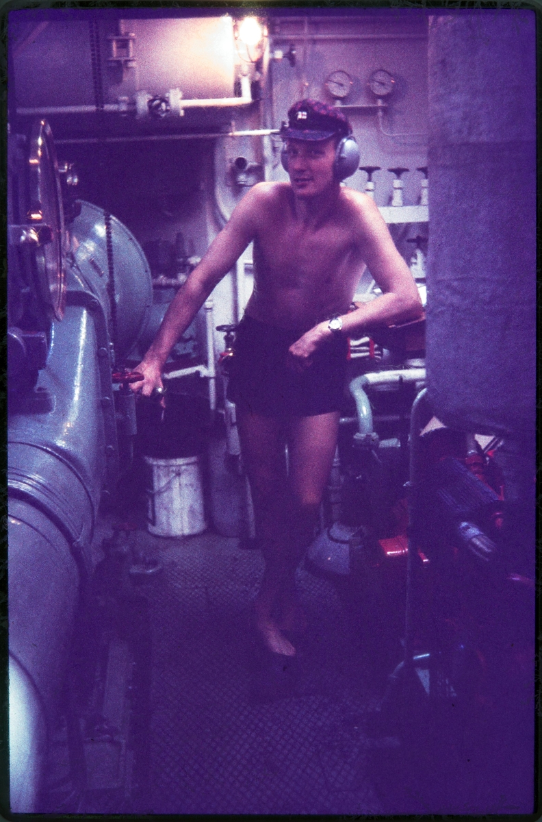 Bogserbåten Wargön. Sune Larsson vid manövern på huvudmaskin.