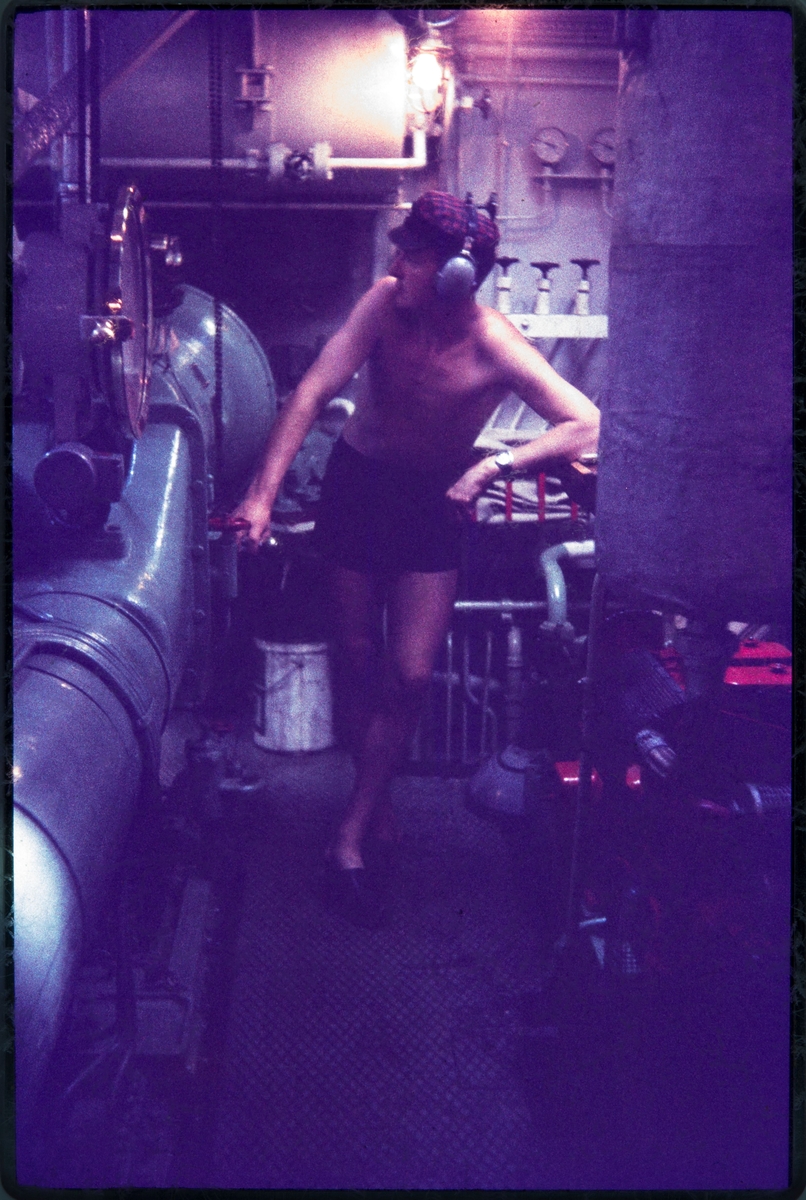 Bogserbåten Wargön. Sune Larsson vid manövern på huvudmaskin.
