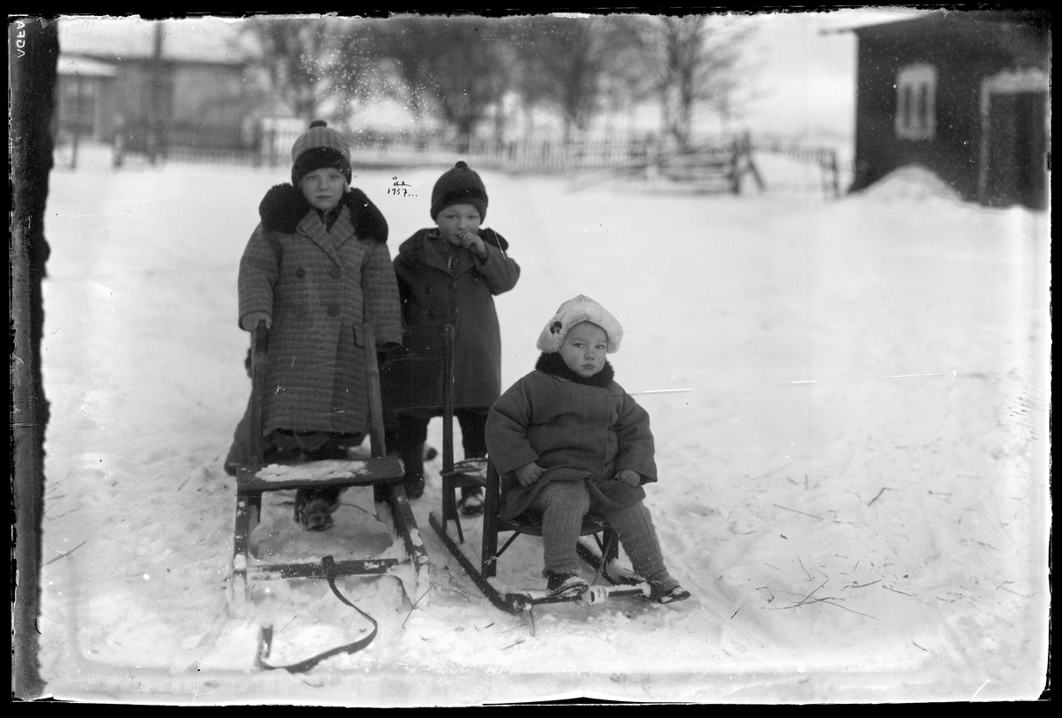 Barn med kälke och spark