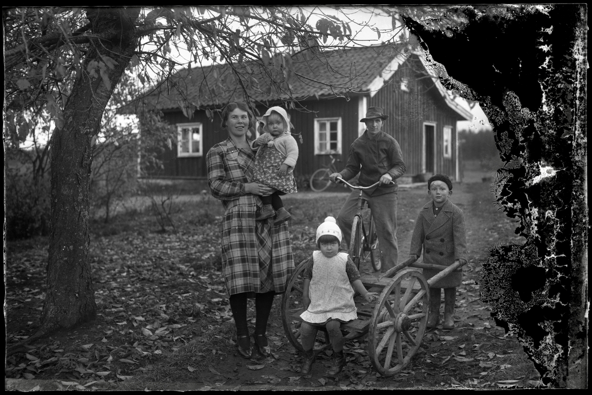 Familj framför bostadshus