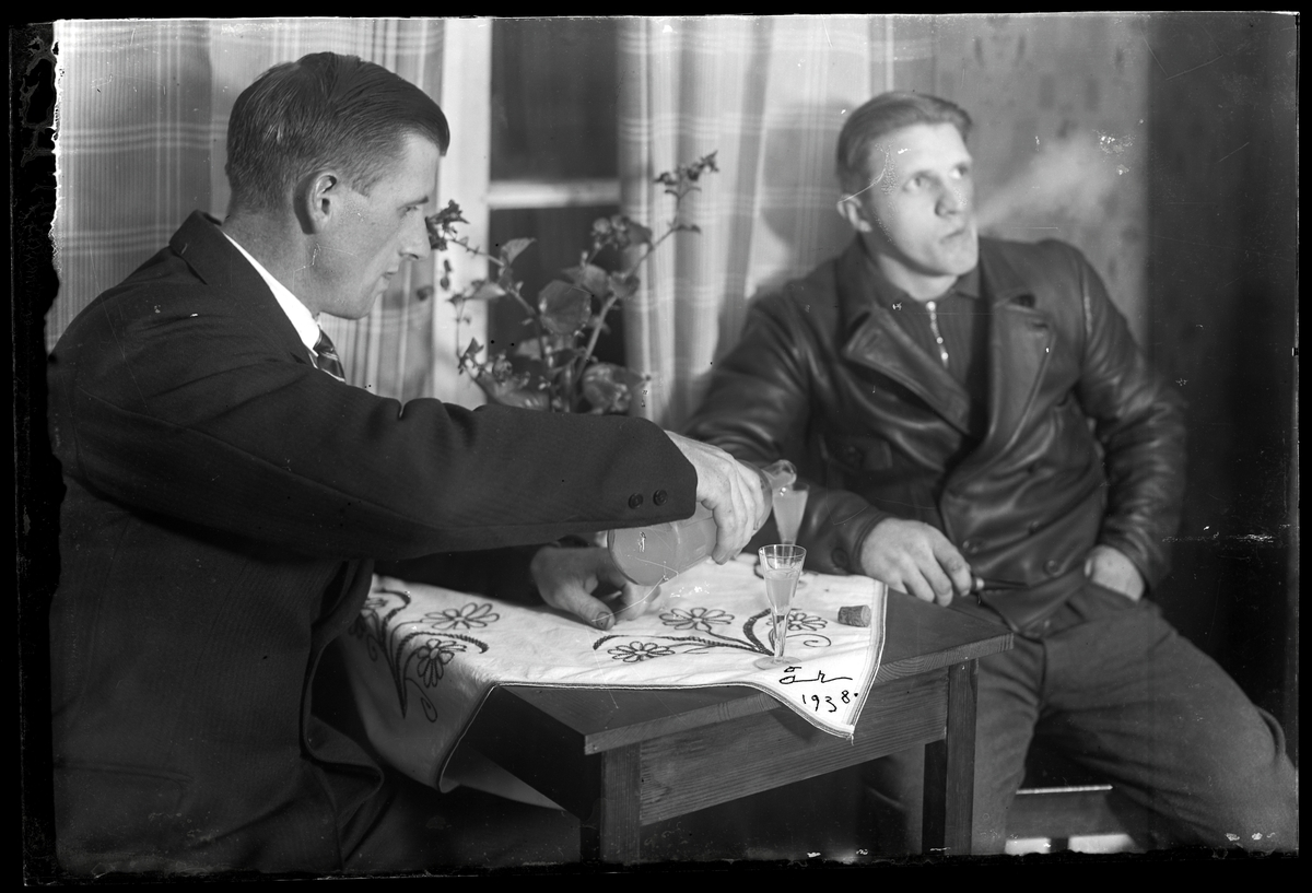 Två män tar sig en sup