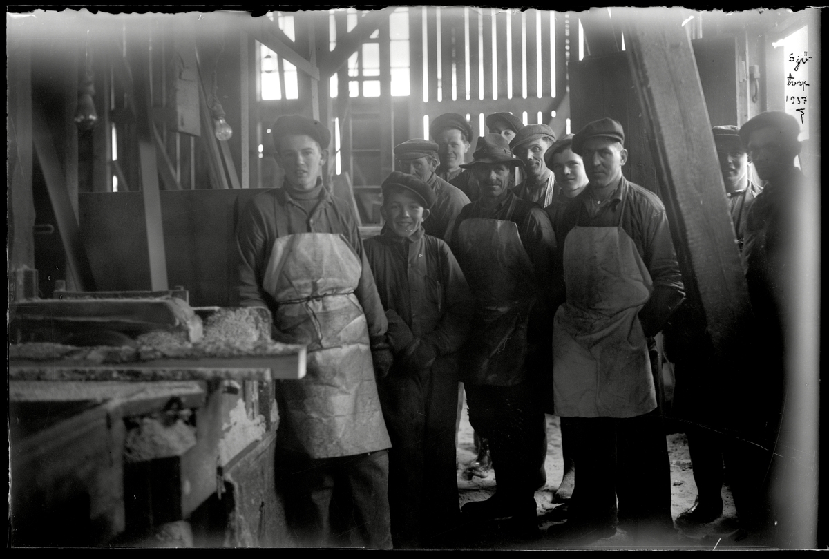 Arbetslag i snickeri eller på brädgård