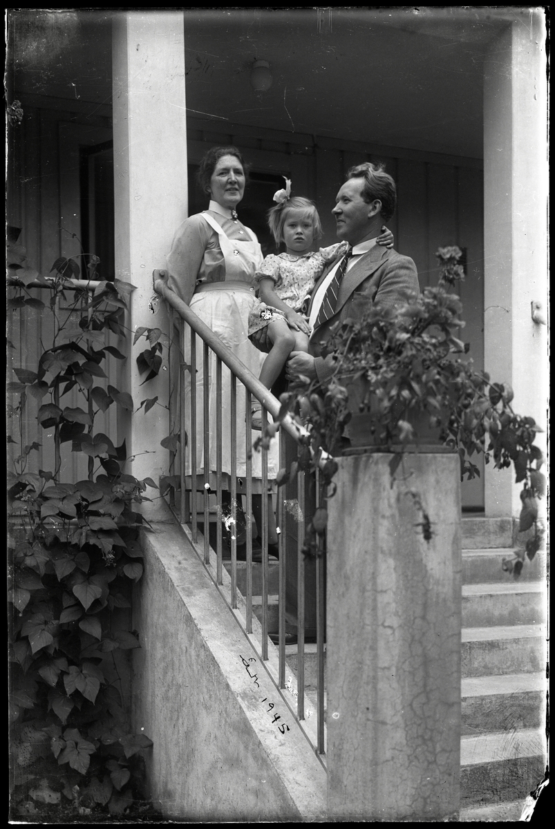 Agda, Gunnar och Ann-Marie Engström på trappan till Klåvastens vårdhem