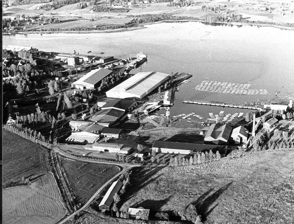 Vy över Graningeverkens såganläggning vid Bollstafjärden. Såghuset till höger.